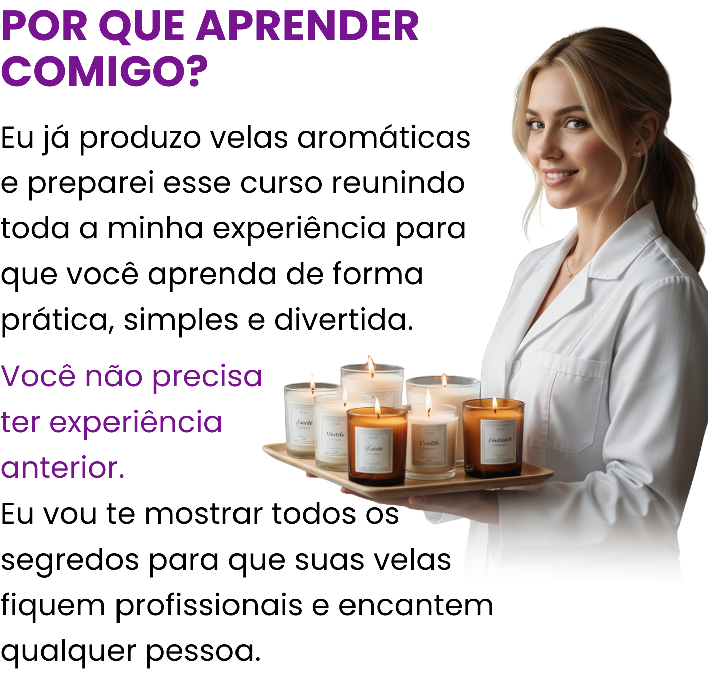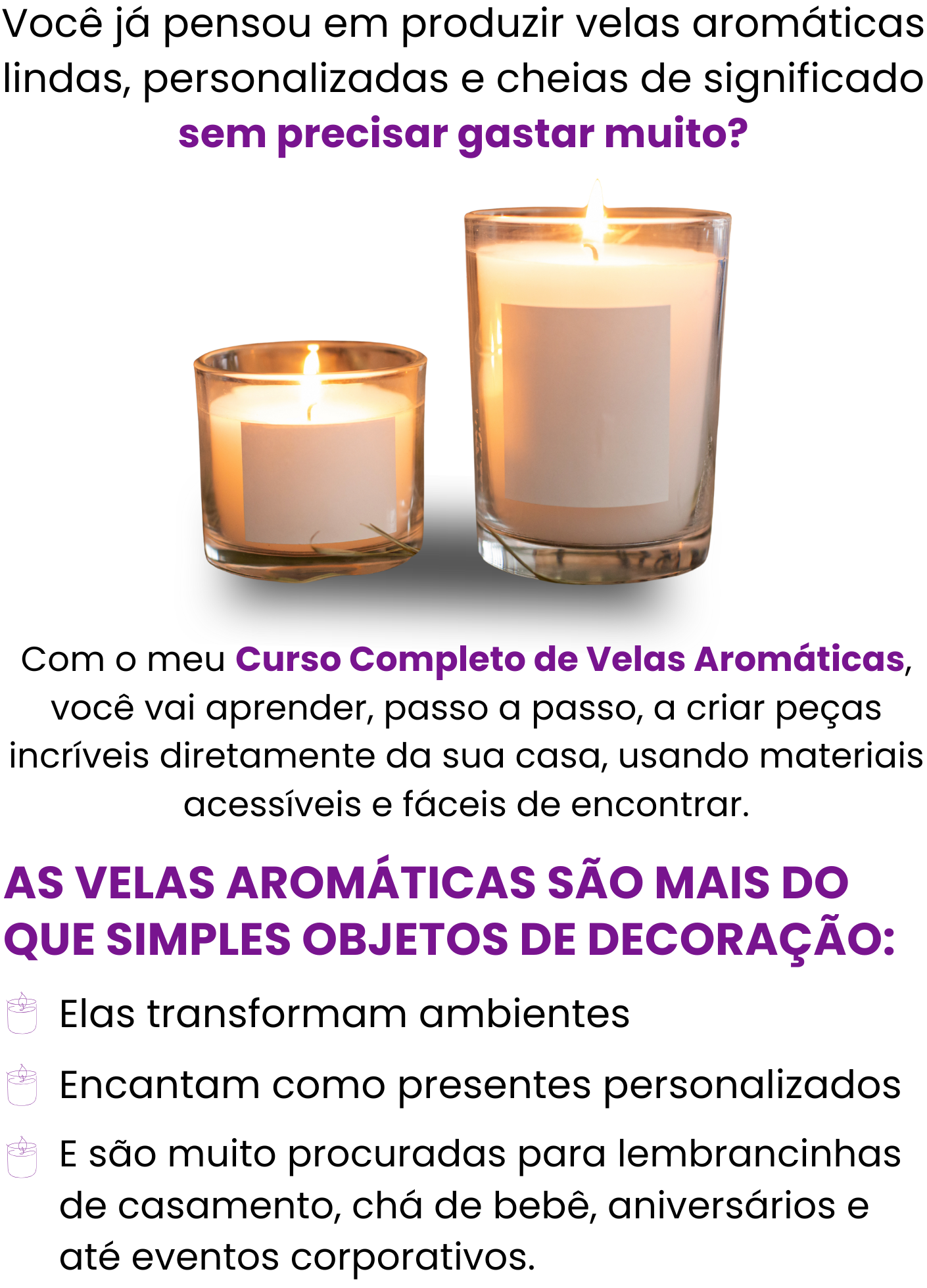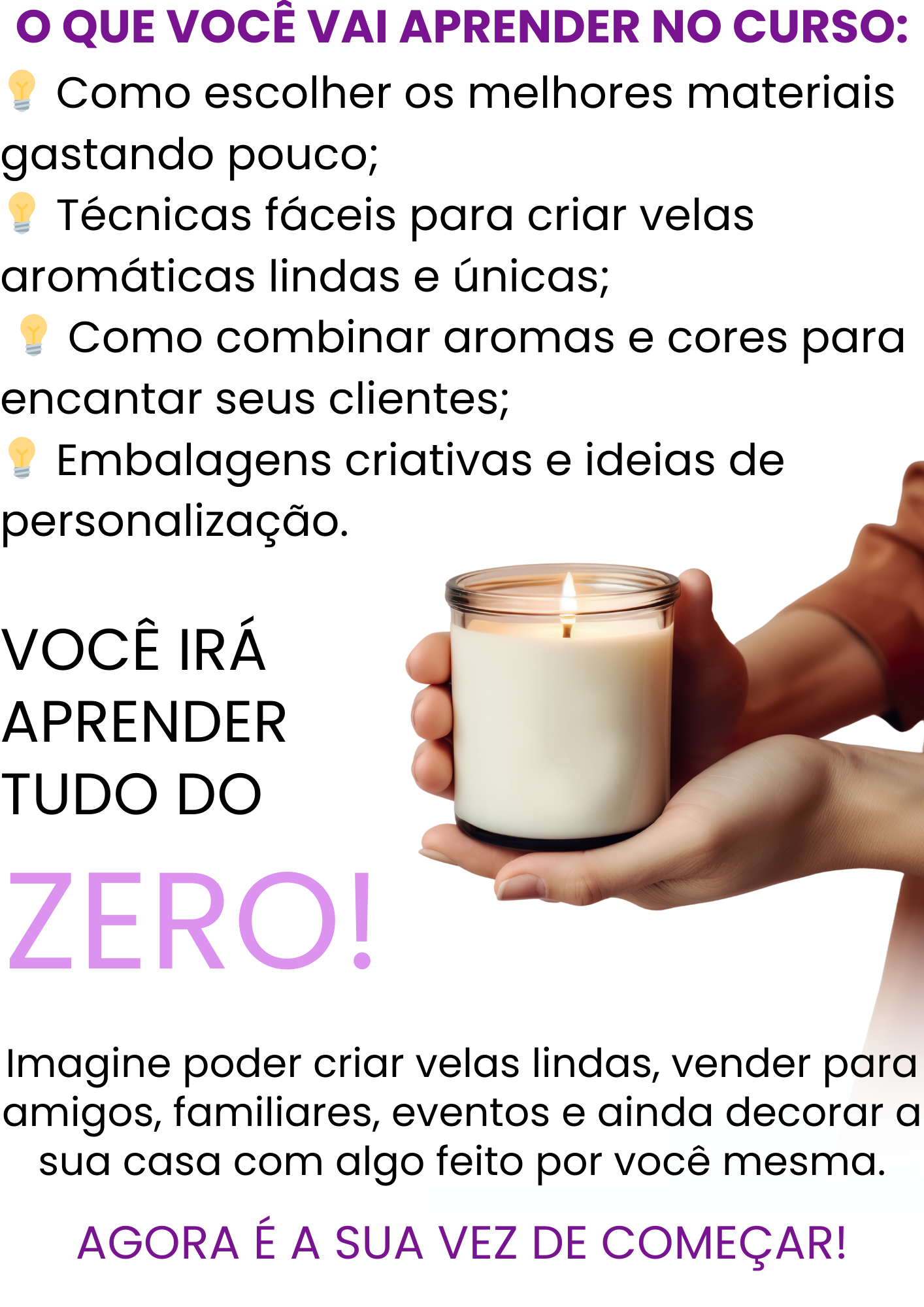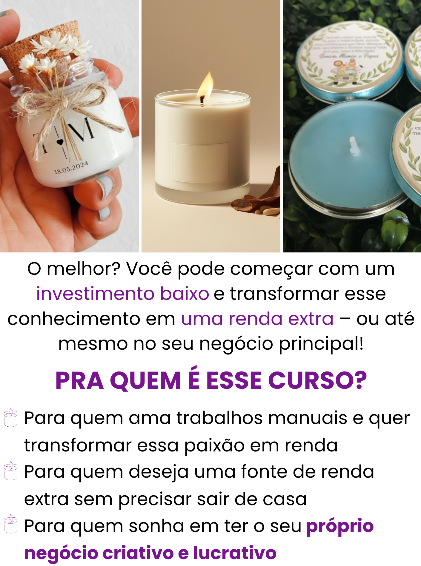 Não! O curso foi criado tanto para iniciantes quanto para quem já tem alguma familiaridade com a produção de velas. Vamos te guiar passo a passo, desde os fundamentos até técnicas mais avançadas.